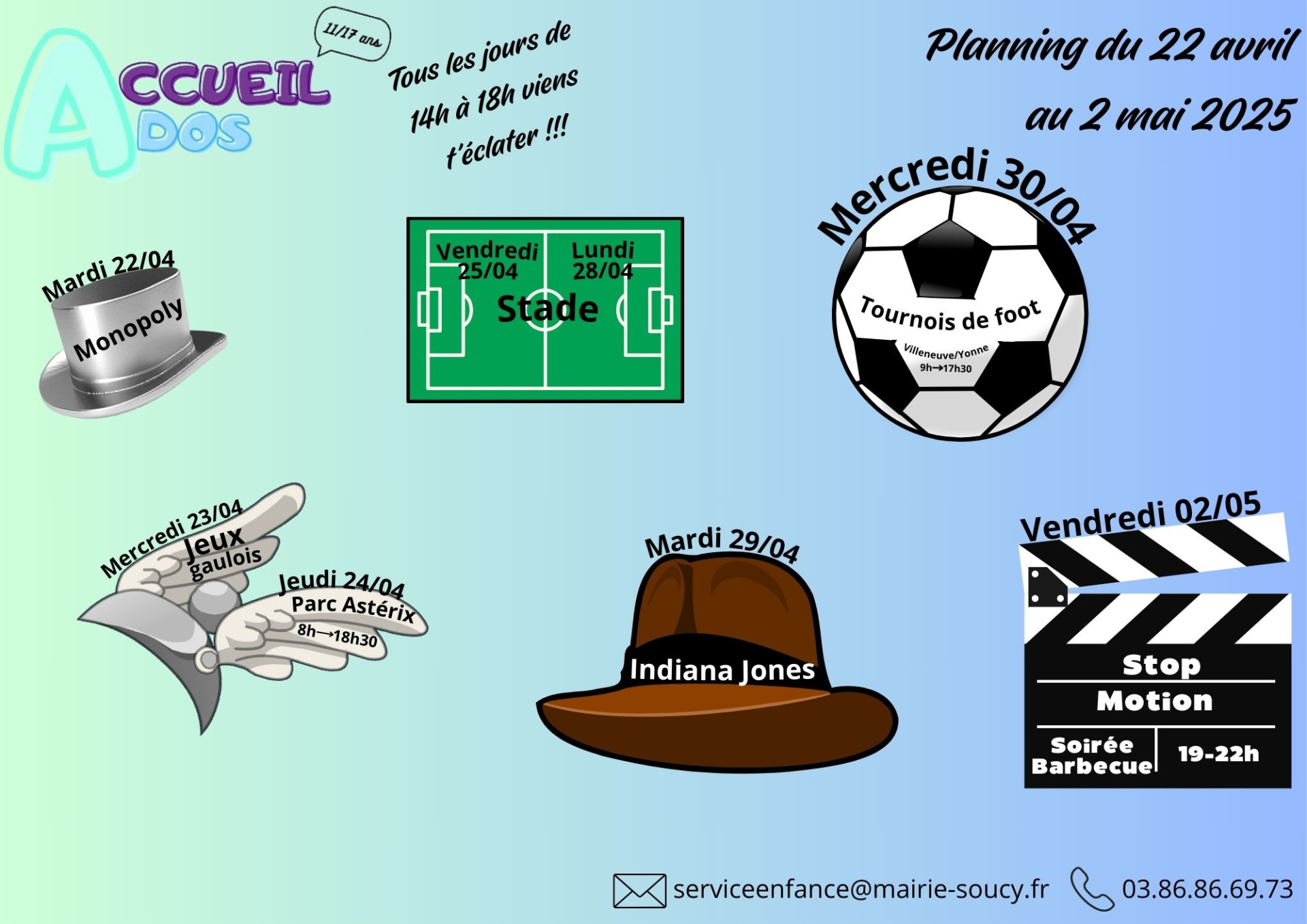 L'accueil Ados programme des sorties du 22 avril au 2 mai 2025