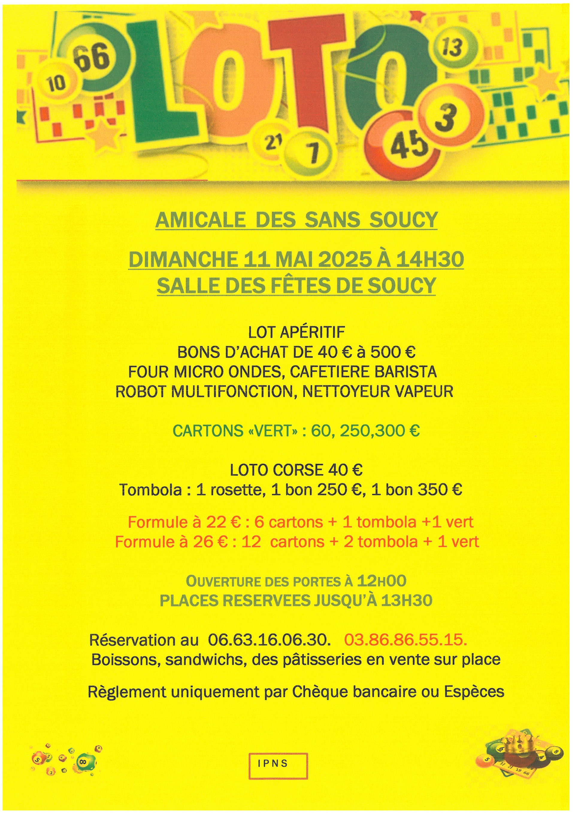 LOTO par l'Amicale des Sans Soucy le 11 mai