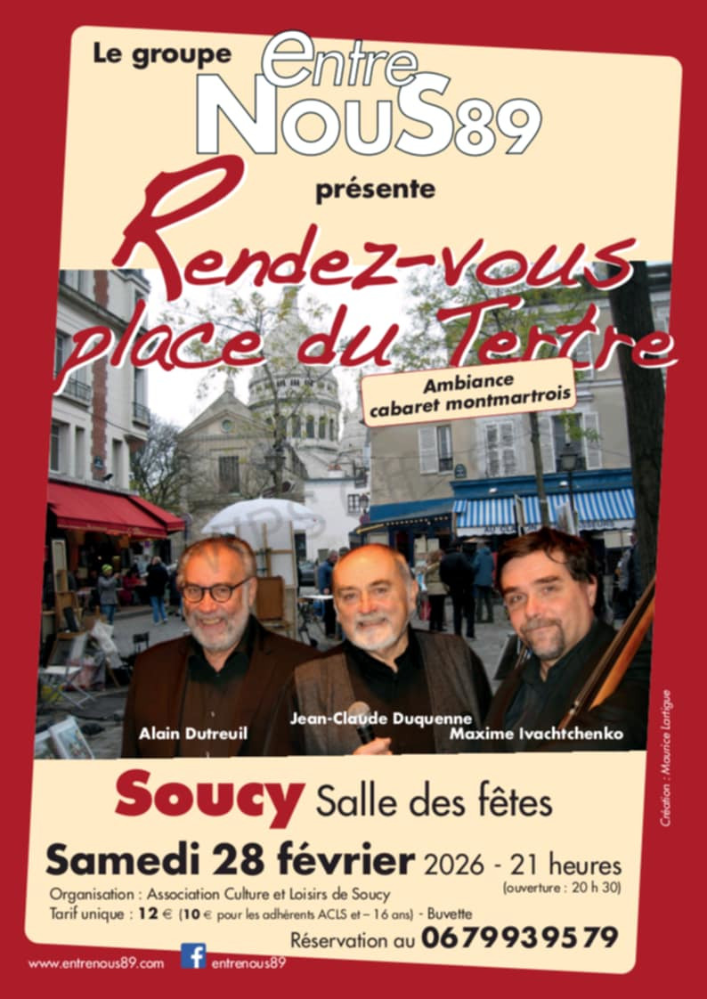 Samedi 28 février 2026 à 21h00 (ouverture des portes à 20h30) à la salle des fêtes de Soucy.